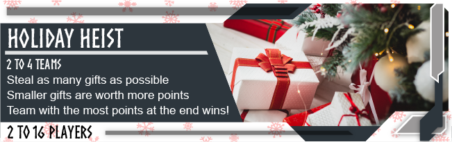 Steal as many gifts as possible. Smaller gifts are worth more points. Team with the most points at the end wins!