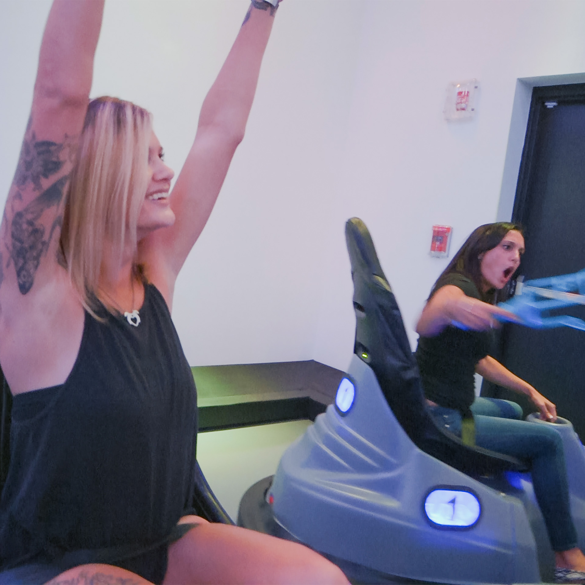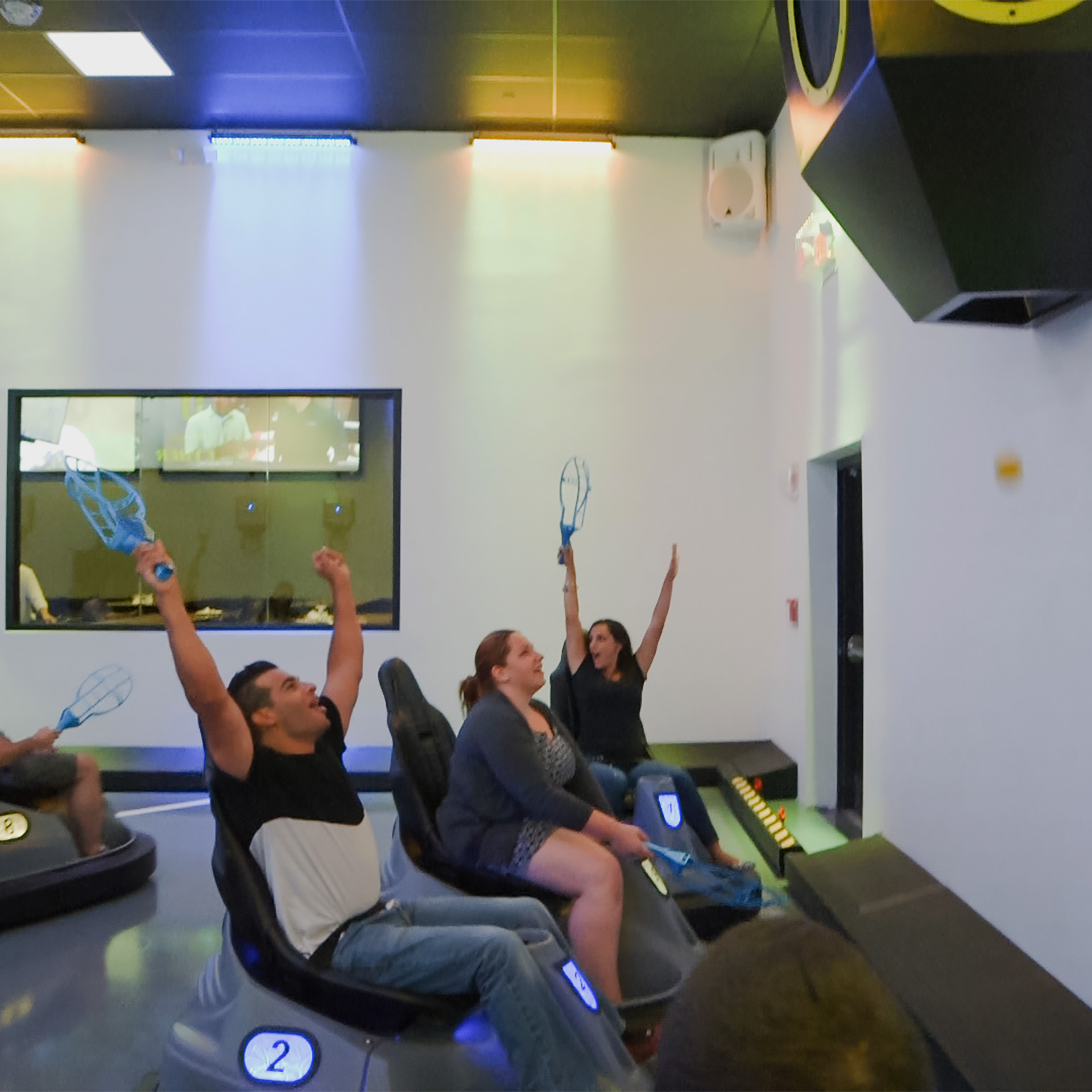 Players must be 54” or taller to play Cyber Sport and a minimum of 6 players are required to play. Additional players may be added to open sessions (up to 10 players total).